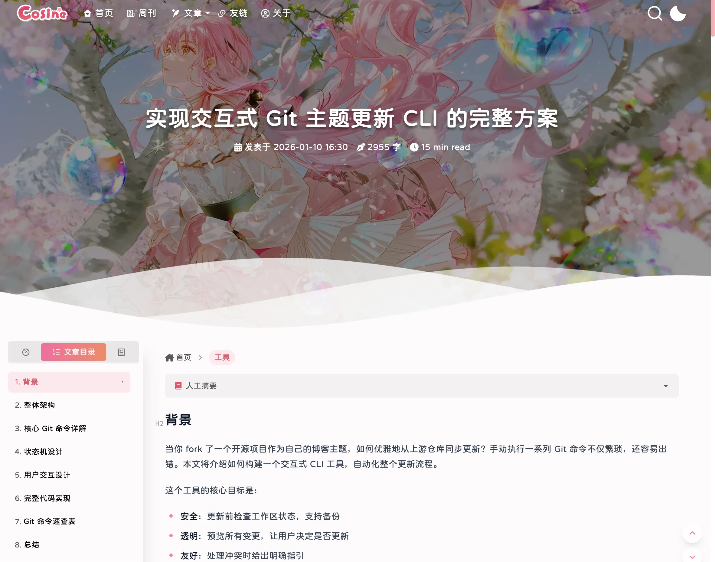然后觉得还挺有意思的,之后准备写一篇博客简单讲讲(实现交互式 Git 主题更新 CLI 的完整方案)