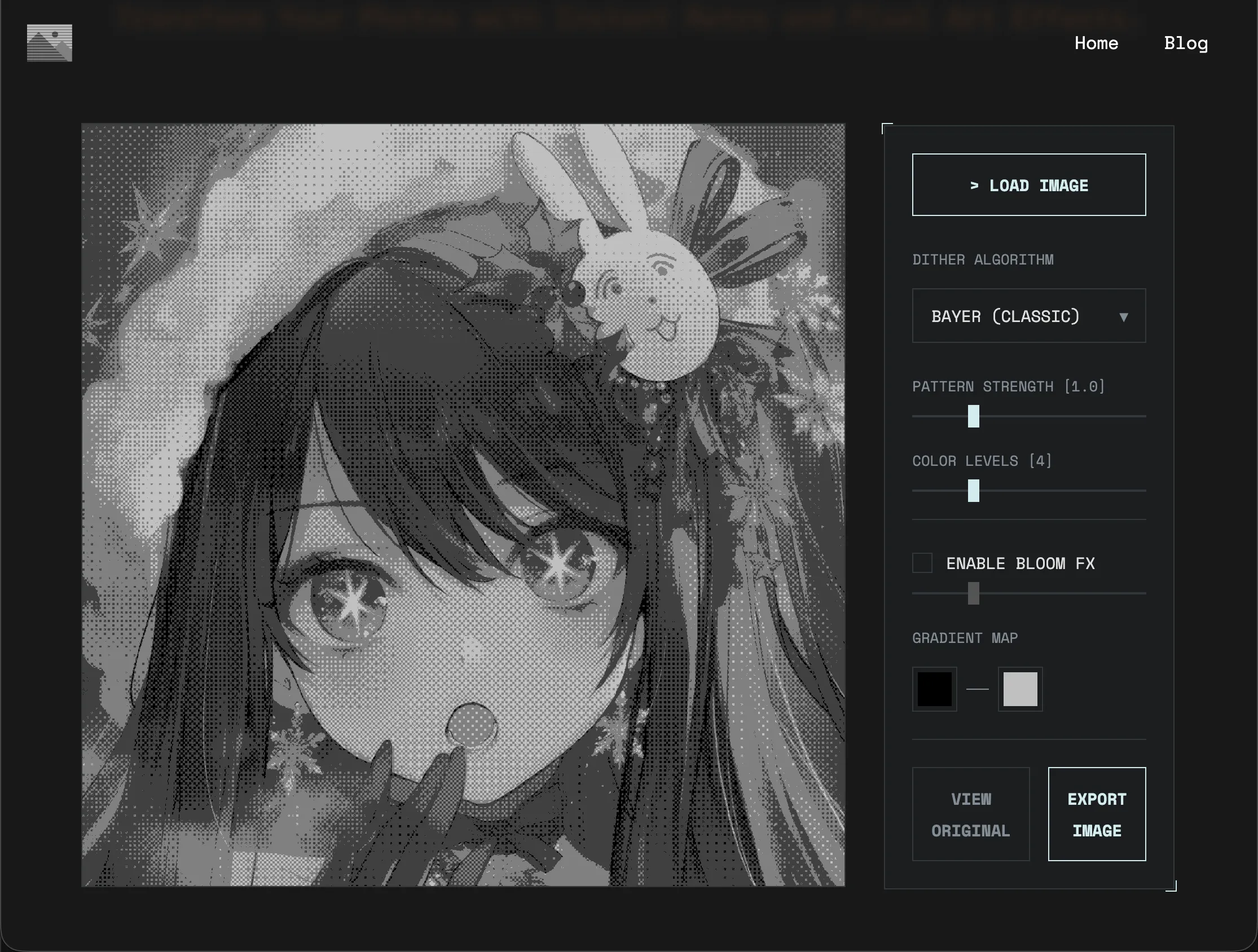 Dither Image Online:一个免费、快速、实时的在线抖动(dithered)图像生成器,或者说像素艺术风格,效果太酷了!